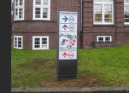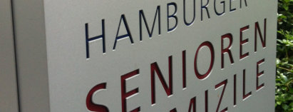 Plane Oberflächen oder gewölbt, aus Kunststoff oder aus Metall (Edelstahl) mit dekupierten Buchstaben oder angstrahlt -