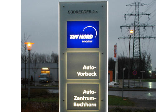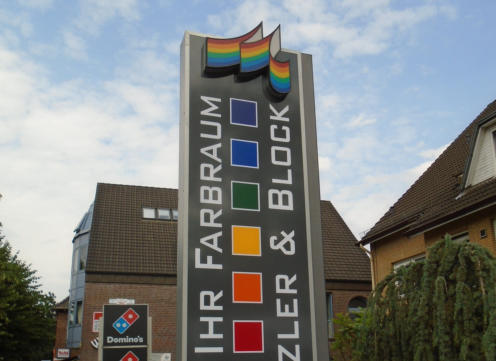 Pylone sind oft die einzige Möglichkeit eine Werbeaussage zu plazieren weil Gebäude zu weit von der Straße entfernt sind.